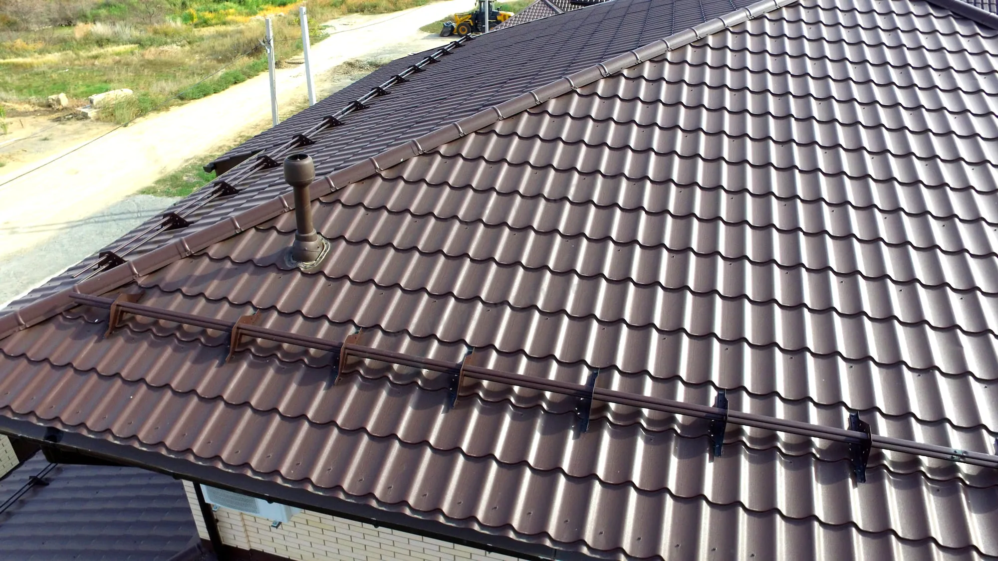 Металлочерепица «Монтеррей» шоколад — это современное кровельное решение с классическим профилем и благородным тёплым оттенком. Цвет шоколад придаёт дому уютный и солидный вид, гармонично сочетается с фасадами в светлых, бежевых, кирпичных и деревянных тонах.